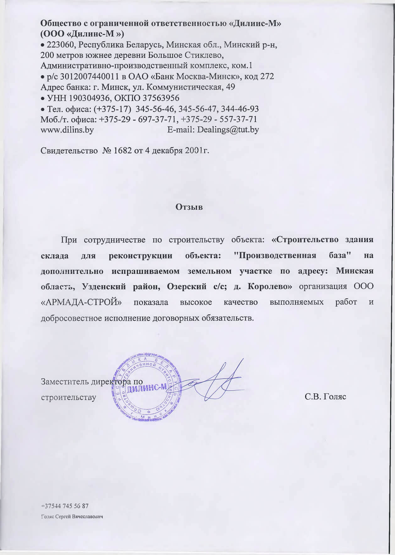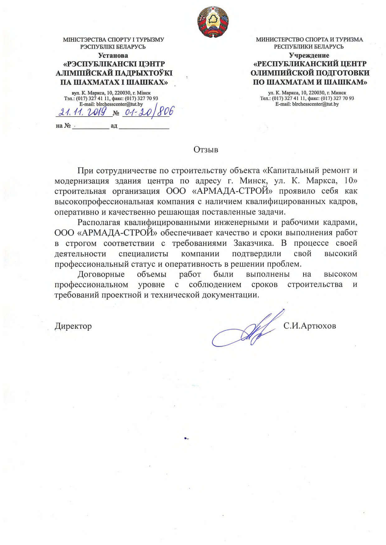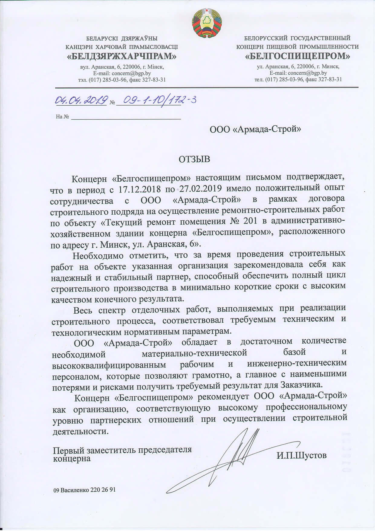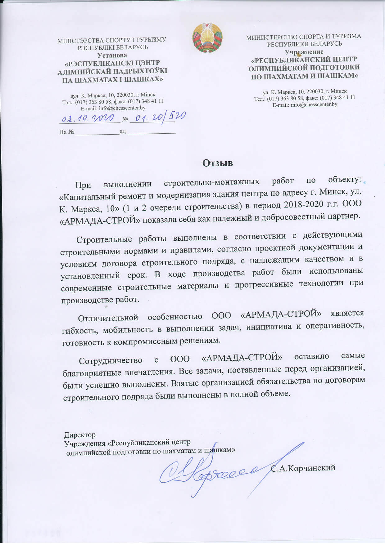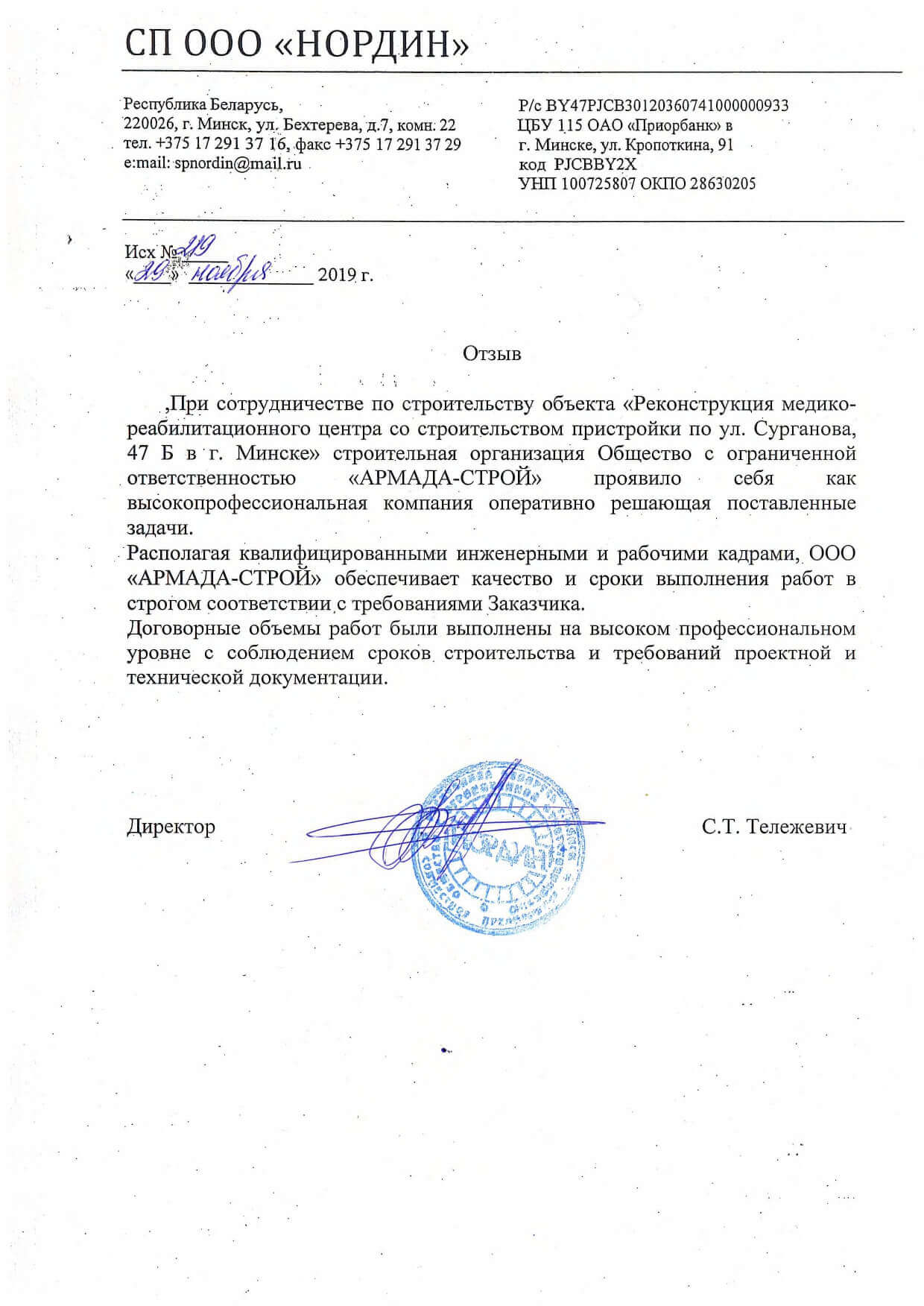 Отзывы заказчиков о сотрудничестве с «АРМАДА-СТРОЙ», о качестве и сроках выполненных работ. Благодарственные письма на официальных бланках организаций.